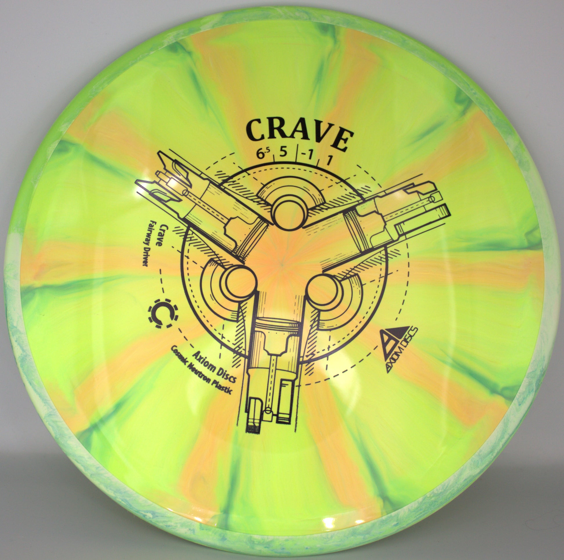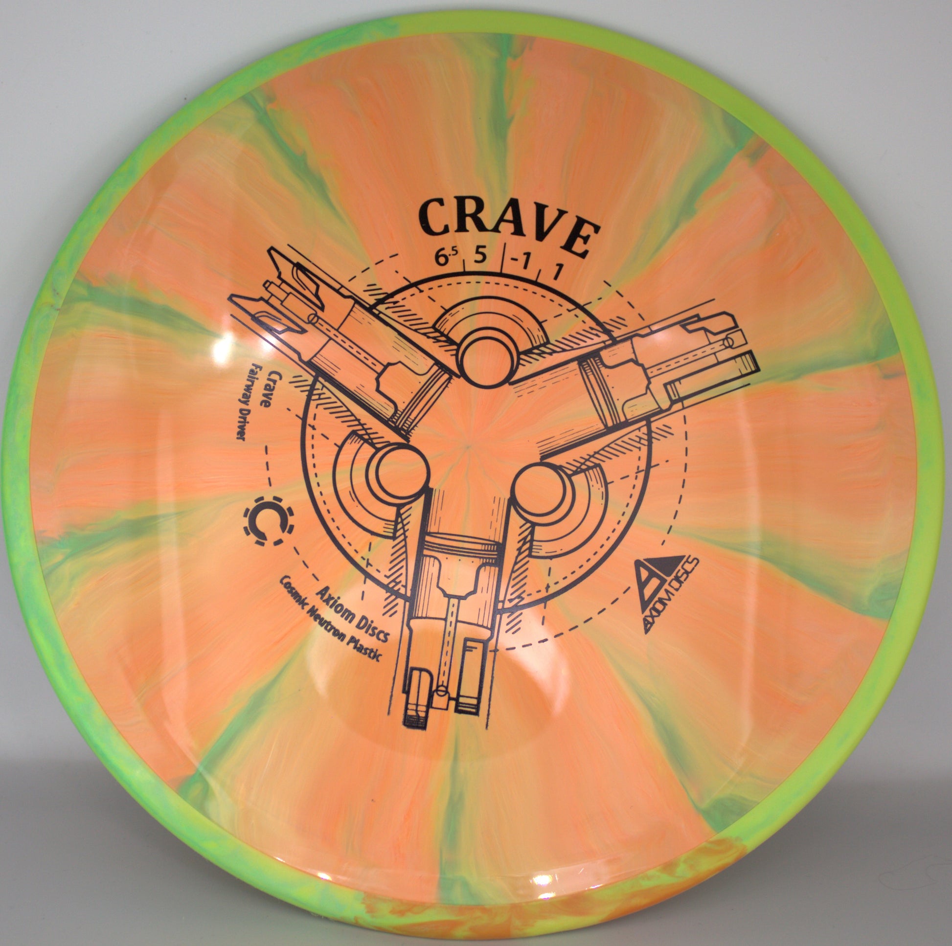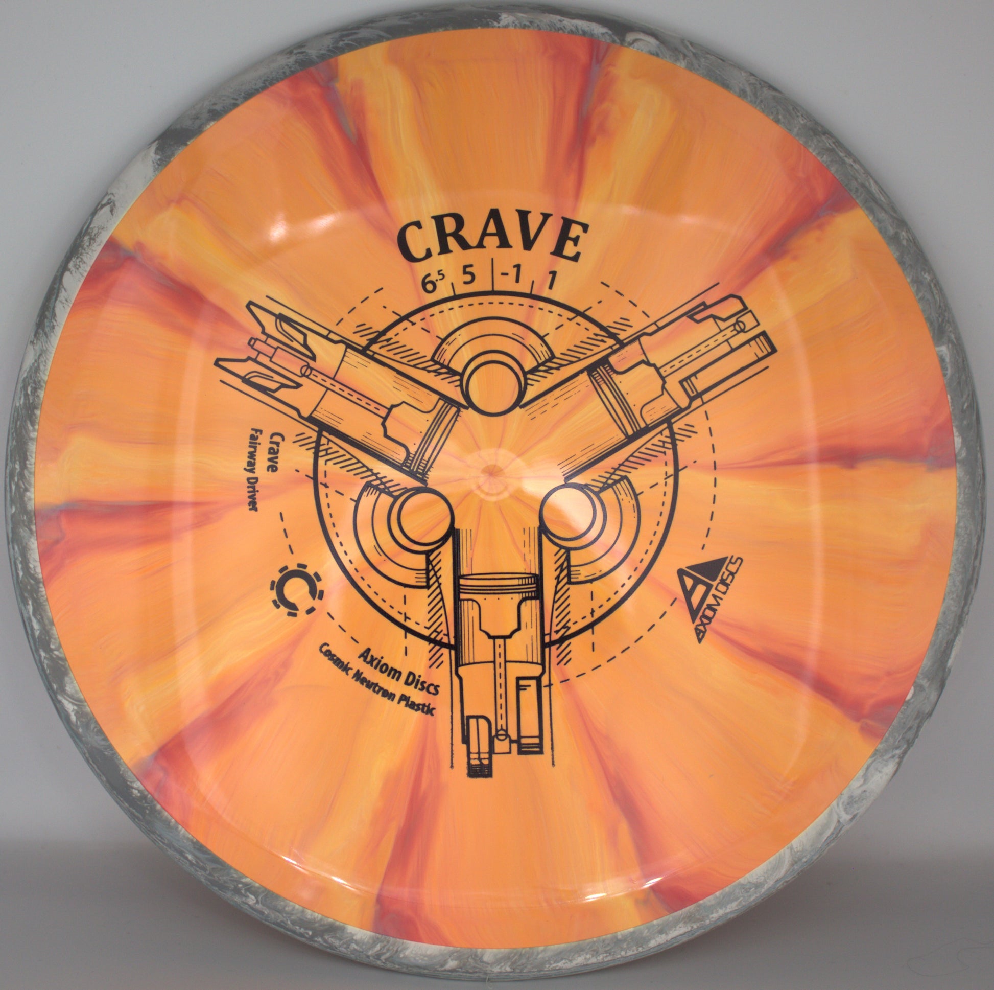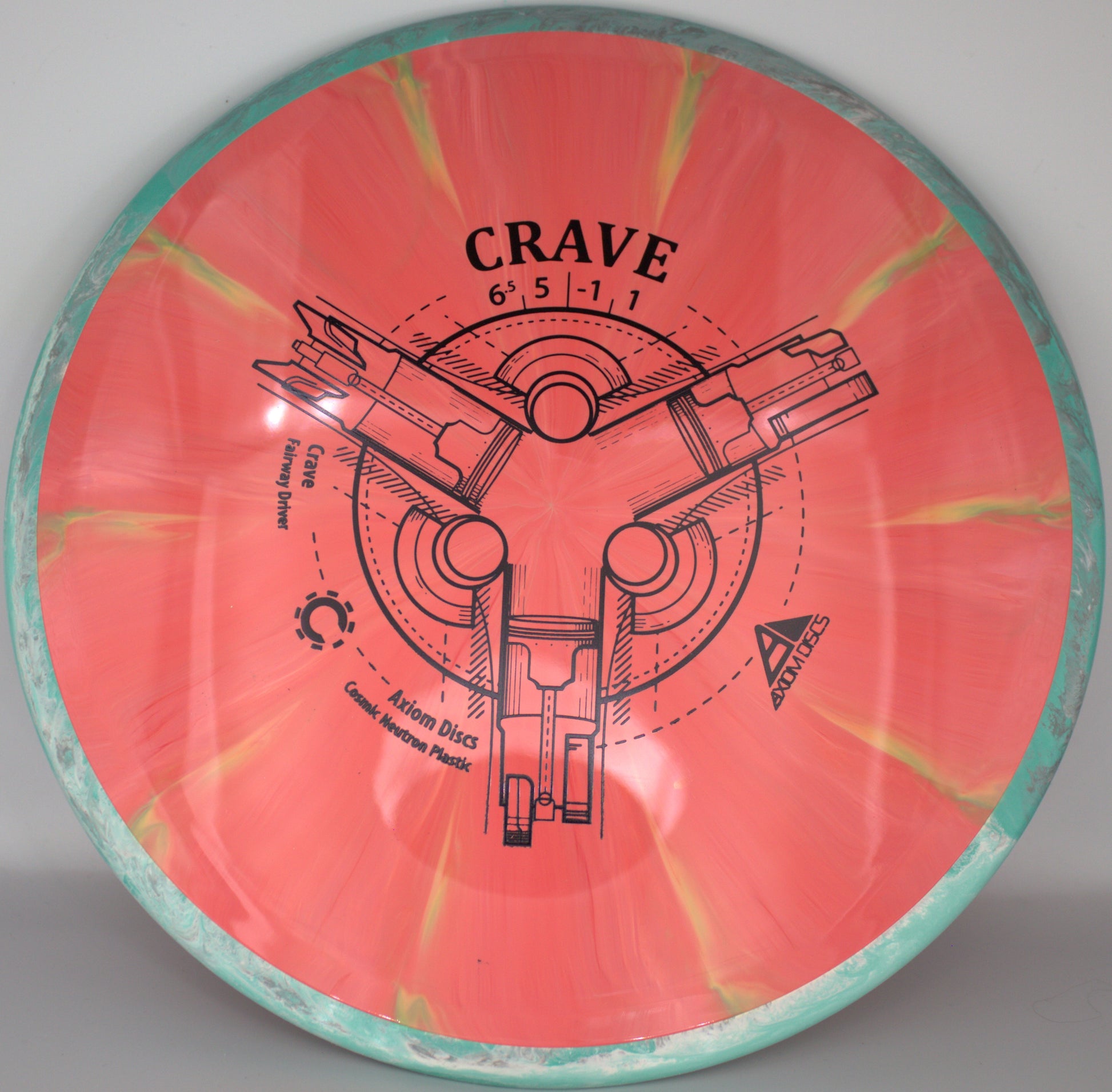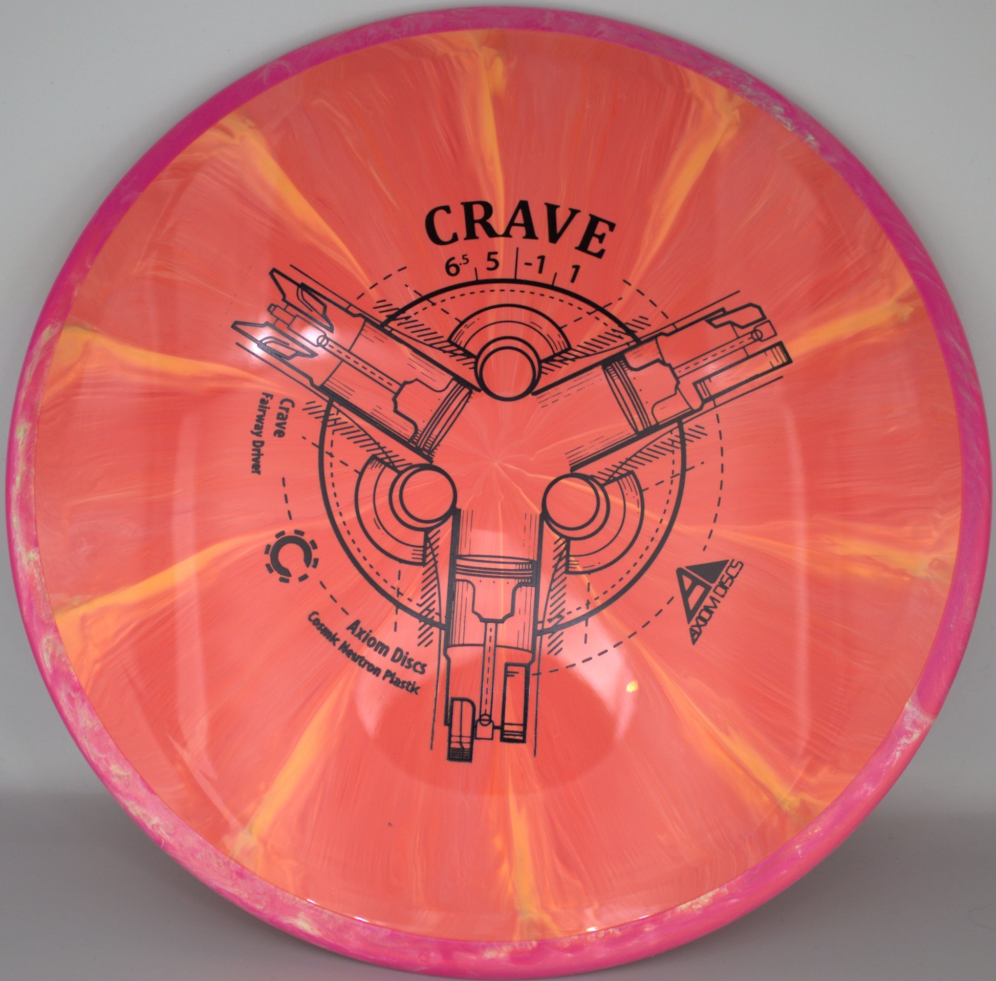 Axiom’s first Fission™ disc is here with the Fission™ Crave! As a reliable, straight-stable fairway driver, the Crave is a perfect candidate for the added GYRO® line-locking of our Fission™ technology - the already laser-like flights of the Crave have never been better. Available in weights all the way down to 155g, the Fission™ Crave is an ideal fairway driver for all arm speeds. Hit your lines with confidence with a Fission™ Crave!